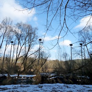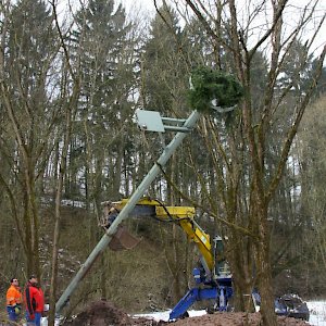 Besonderes Augenmerk war von der ökologischen Bauüberwachung auf zwei Graureiherkolonien am Froschgrundsee und bei Unterwohlsbach zu legen. Ende Februar begleiteten wir die Errichtung von künstlichen Graureihernisthilfen am Froschgrundsee. Anfang April konnte die fertiggestellte Ausgleichsmaßnahme im Rahmen einer Helikopterbefliegung der Baustelle aus der Luft begutachtet werden. Die Graureiher inspizierten vorsichtig die neuen Nisthilfen.