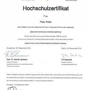 Wir gratulieren! Unsere Leiterin des Fachbereichs Umweltplanung und Naturschutz Frau Petra Theile hat die Zertifizierung